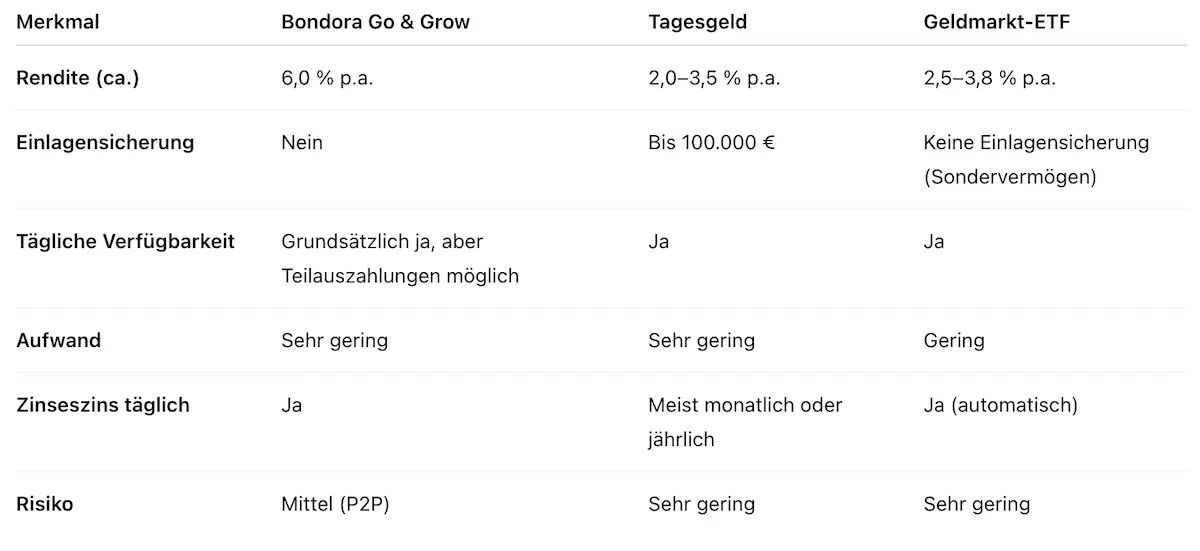 Bondora Go & Grow vs. Tagesgeld & Geldmarkt-ETFs